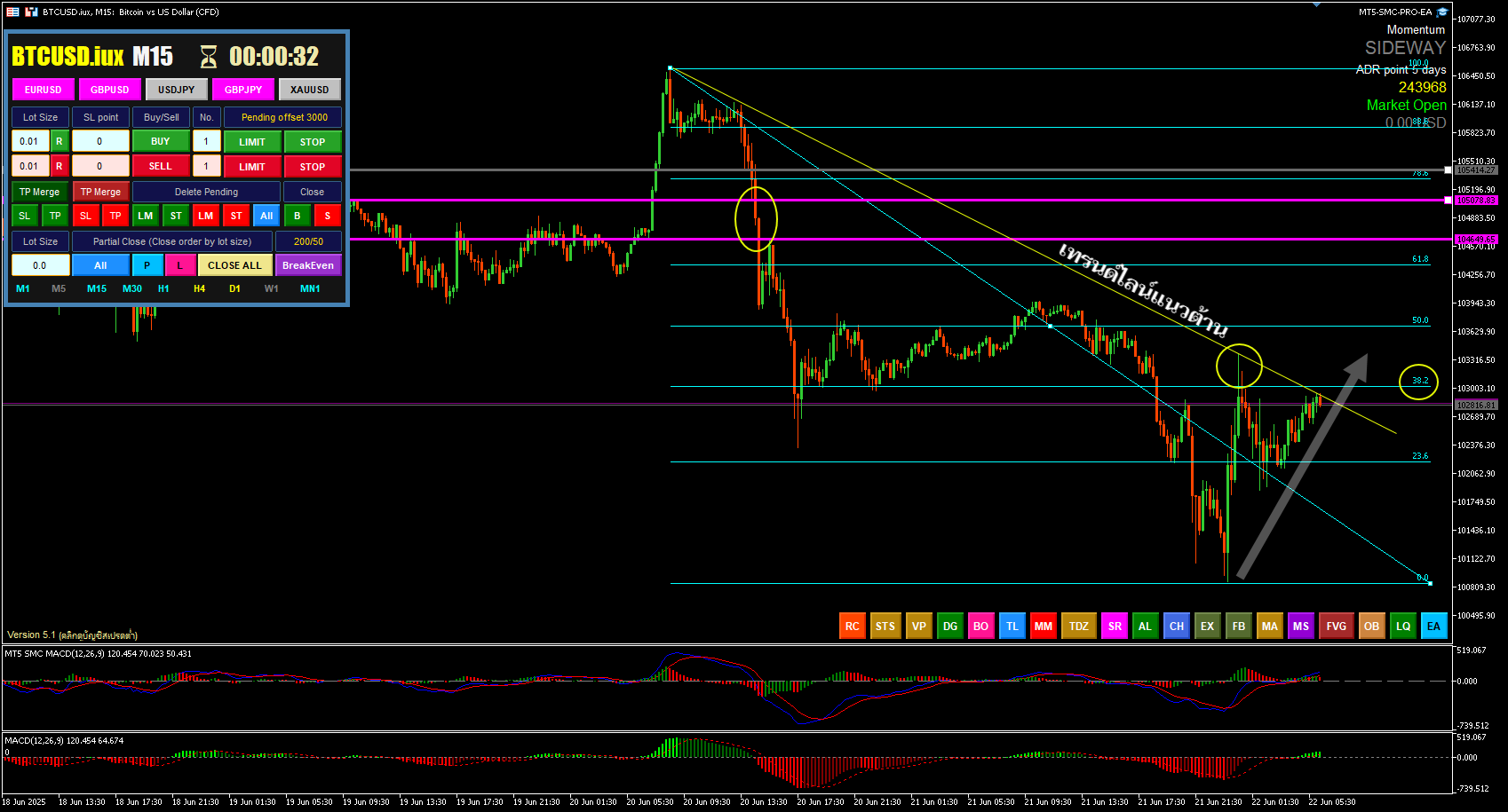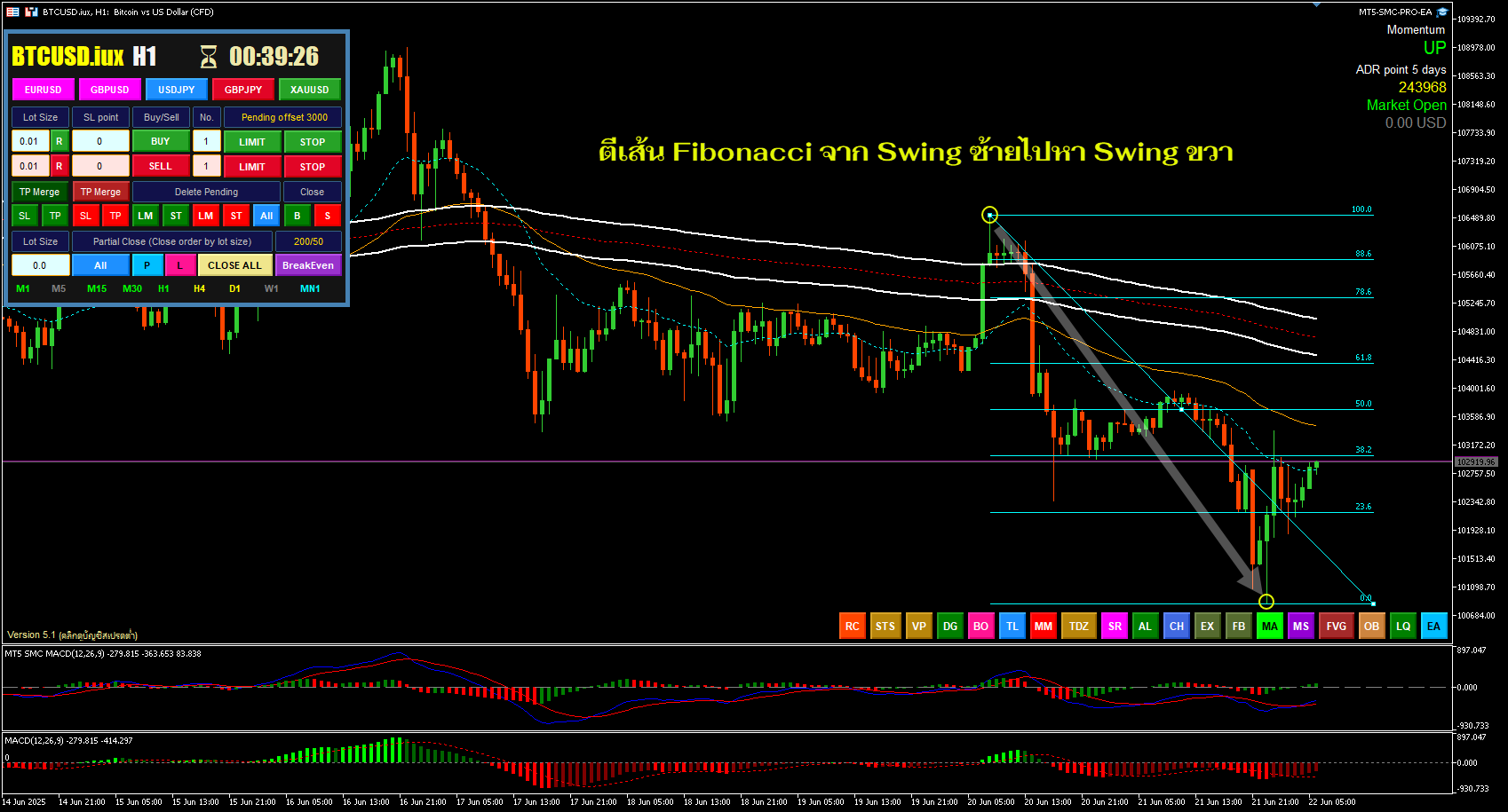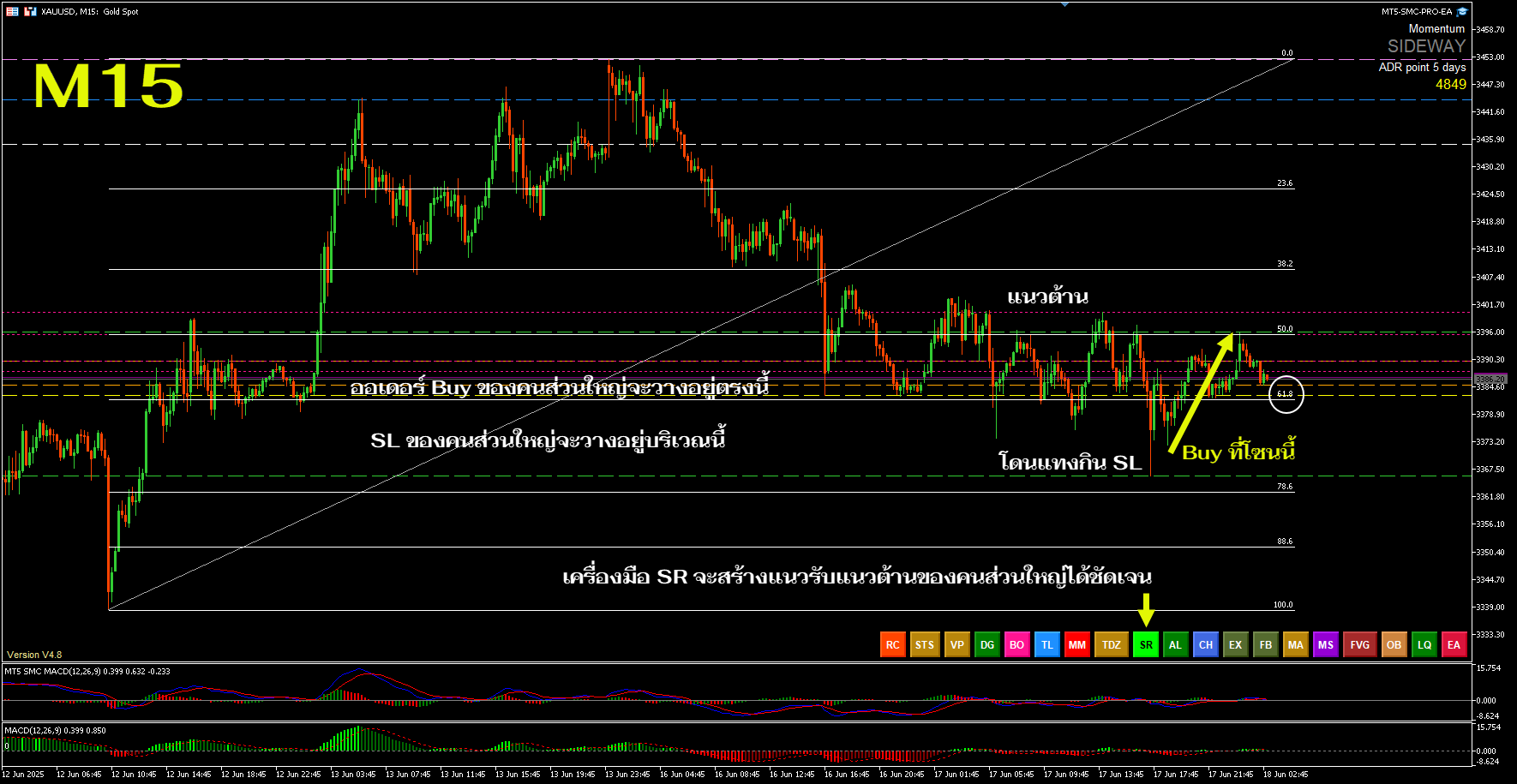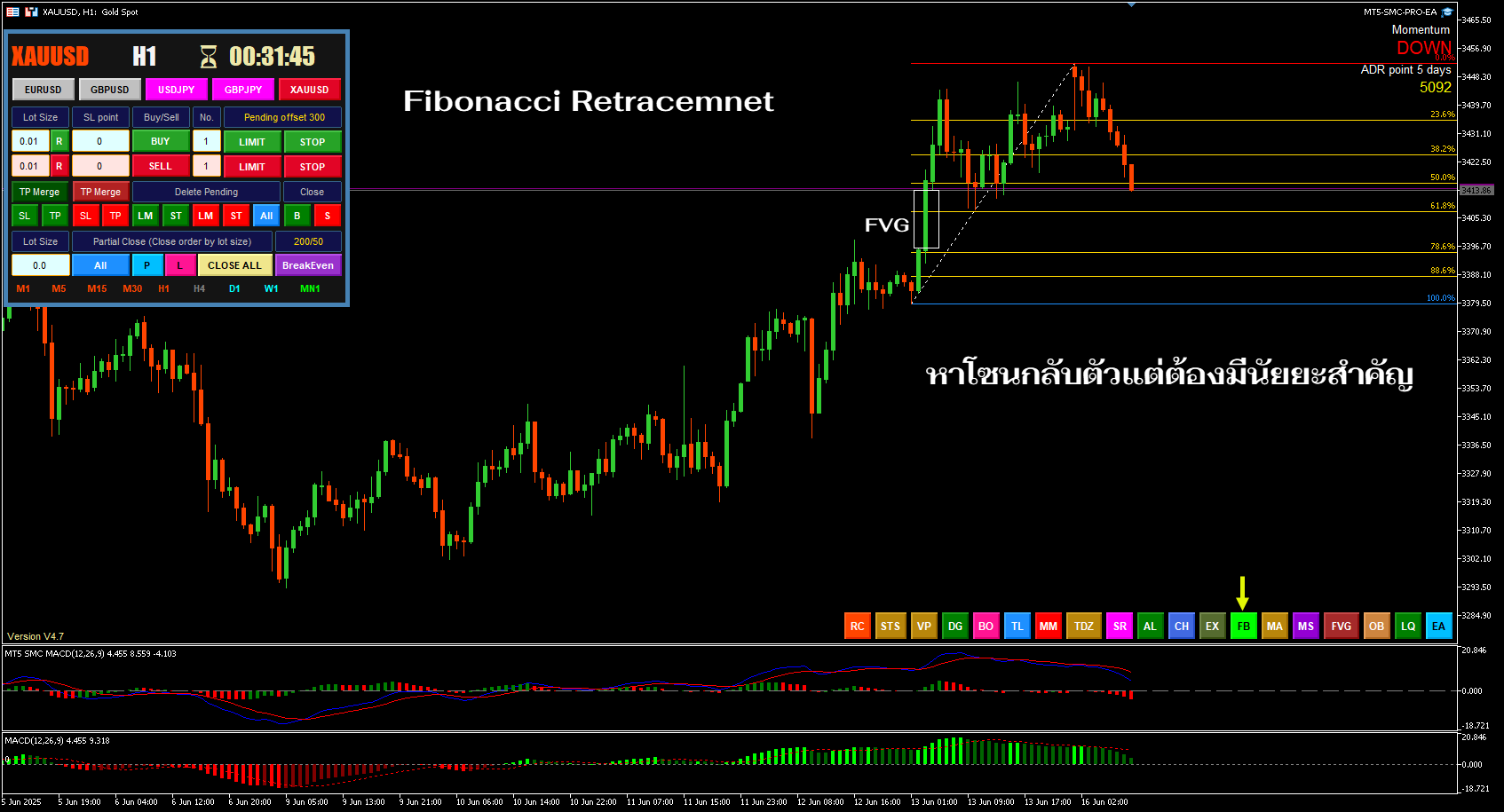 👍 เทคนิคต่อไปนี้เป็นการนำเอาเทคนิคการเทรดมาตรฐานที่เรียบง่ายซึ่งเทรดเดอร์จำนวนมากใช้เทรดทำกำไรกัน มาเป็น ระบบมาตรฐานหลัก หรือ ระบบนำร่อง และ นำเอาเทคนิค SMC บางส่วนมาใช้ผสมด้วยการหา FVG หากบริเวณใดเกิด FVG ใหญ่ๆก็จะมี Order Block อยู่บริเวณติดกับ FVG จึงส่งผลให้เทคนิคมาตรฐานหลักมีความแม่นยำเพิ่มขึ้นโดยไม่จำเป็นต้องพูดถึงเรื่องของ SMC โดยตรงให้มือใหม่รู้สึกน่ากลัวเลย หัวใจหลักของเทคนิคคือ การเทรดตามเทรนด์หลัก (Trend Following) เป็นเทคนิคที่ได้รับการยอมรับว่ามีโอกาสทำกำไรสูงที่สุด โดยการใช้เส้นค่าเฉลี่ยแบบ Channel มาแทนการดูโครงสร้างราคาเพื่อลดความซับซ้อนลงไป และ ใช้ Fibonacci หาการกลับตัวของสถานะ Pullback และ ใช้ MACD ช่วยยืนยันการกลับตัวของ Pullback และโมเมนตัมของราคาในการเข้าออเดอร์